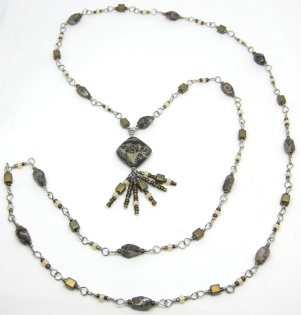 Multi-Gemstone w/Spiral Pendant Long Necklace