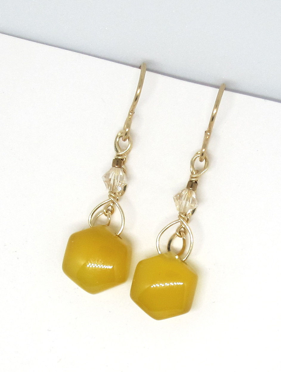 Earrings - Star-cut Onyx with Copper Enamel Discs