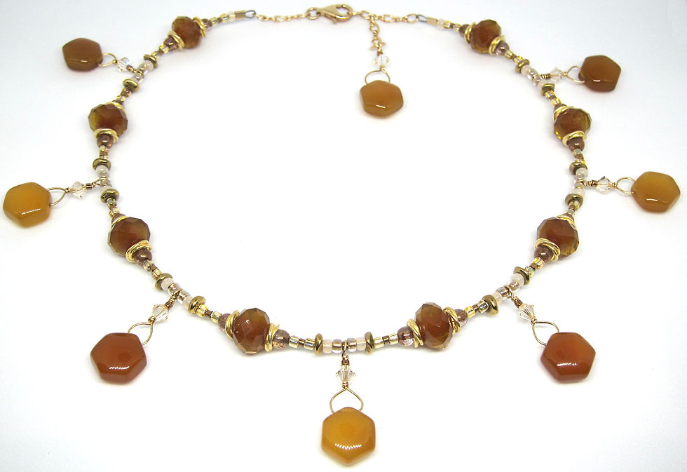 Choker - Brecciated Jasper and Czech Glass Leaves